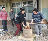 お餅つきは留学生の皆さんも挑戦。始めは中国語でのかけ声も終盤では日本語の掛け声でバッチリ決まってました。